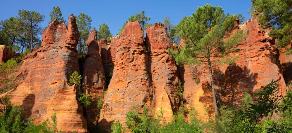 Roussillon feels like Provence dipped in terracotta. Its buildings glow in deep orange and red hues thanks to the region’s natural ochre deposits.